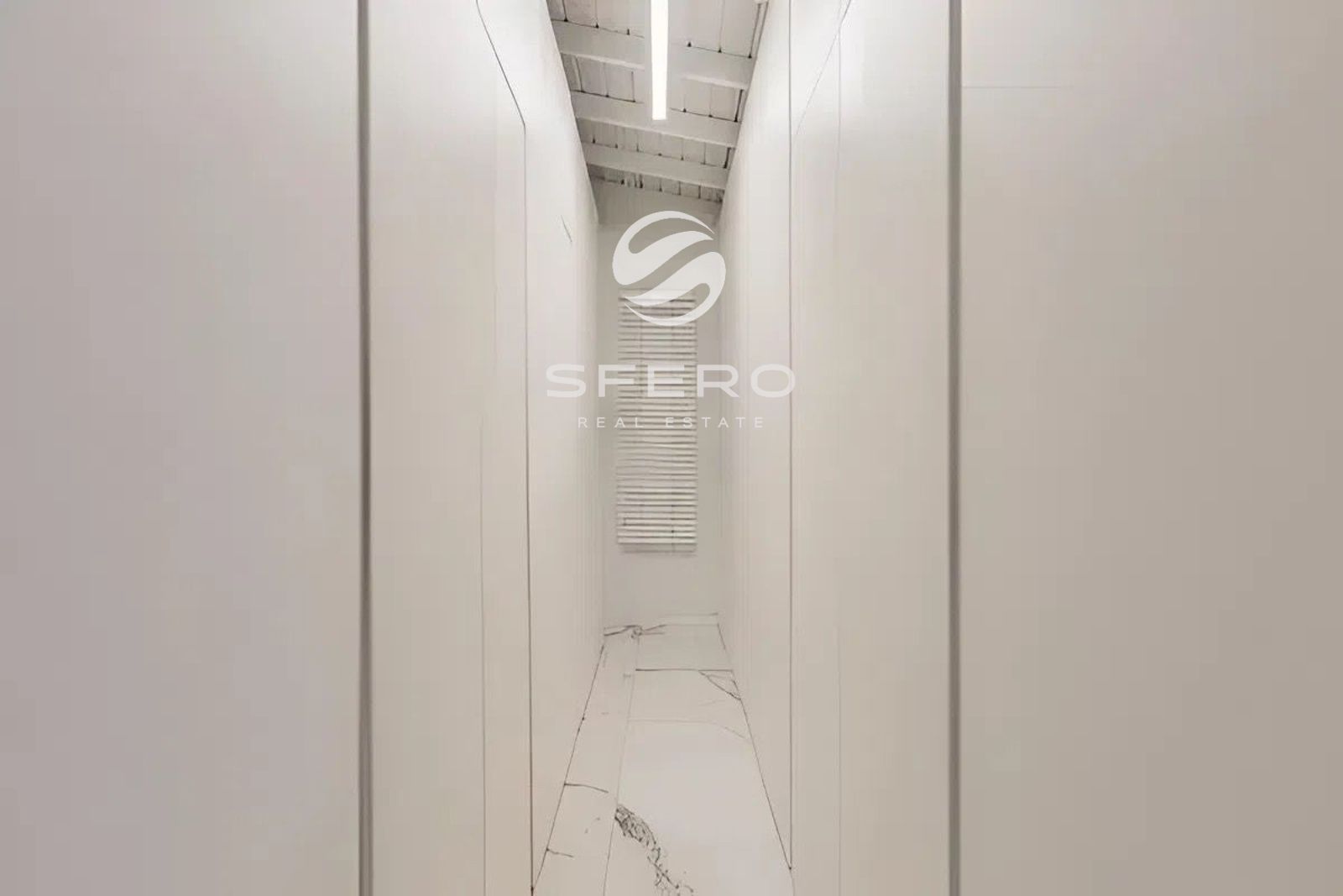 • Large-format glossy porcelain flooring